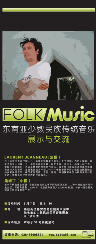 ■内 容:播放两位嘉宾在老挝越南中国等地收集的少数民族民间音乐影象、电子音乐秀
