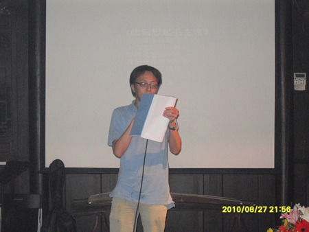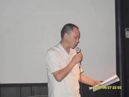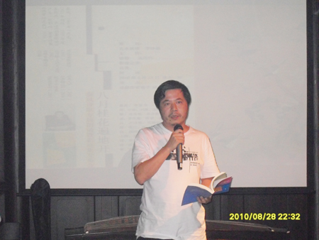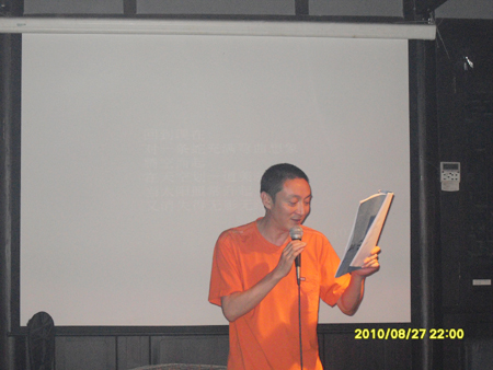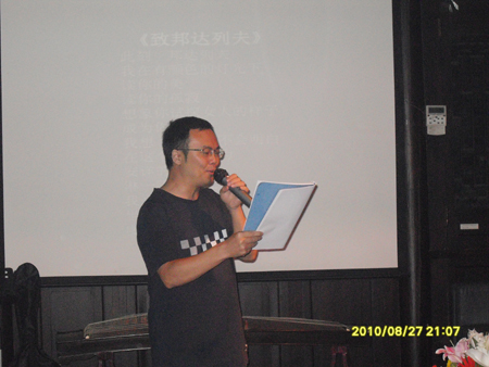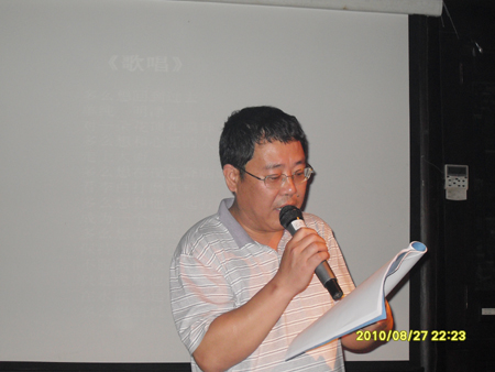 秦风老师在现场朗诵自己的诗歌