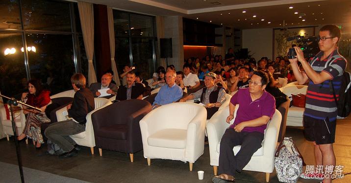 形式二:斯洛文尼亚诗人用英语朗诵成都诗人的诗。成都诗人用方言朗诵自已的诗和翻成中文的斯国诗人的诗。