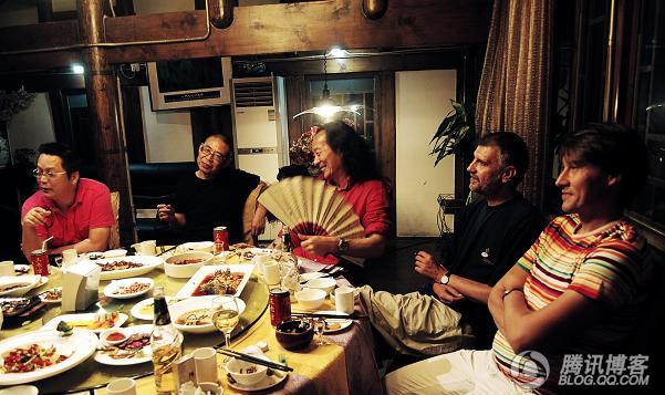 诗歌的翻译工作蛮辛苦,结束后去诗人李亚伟的“香积厨”吃饭(左起:杨小滨,李亚伟,杨炼,Goradz,Ales)