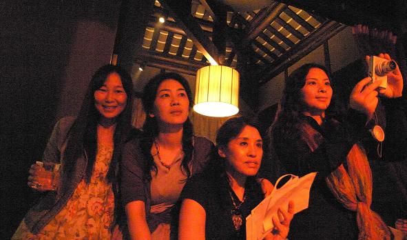 (左起:作者潘黎冰,作家洁尘,诗人翟永明,摄影师李永红)拍摄/李中茂