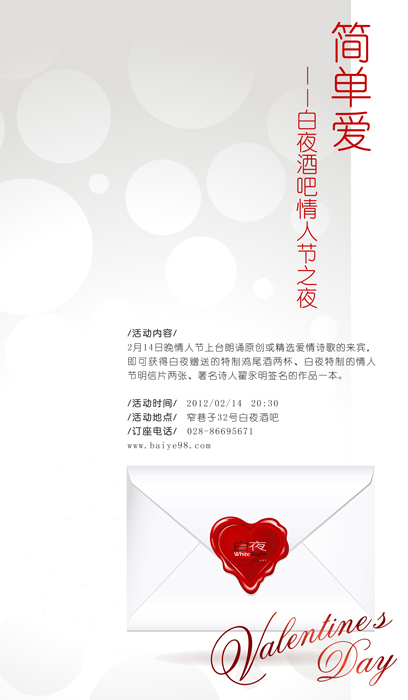 /活动时间/ 2012/02/14 20:30/活动地点/ 窄巷子32号白夜酒吧/订座电话/ 028-86695671
