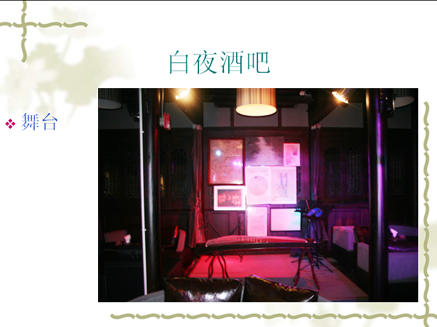 夜酒吧开业以来,除去文学艺术方面的活动外,也举办过各种类型的派对、活动.如法国红酒品鉴会、大型证券公司股市讲解会,知名传媒公司客户联谊会,世界旅游小姐初选赛等等.通过以上各种活动的承办,我们不断改进和完善活动流程和产品服务质量.也希望能为更多的企业及个人提供服务. 我们不仅凭借场地的优势,也提供独特的创意,为顾客举办生日宴会、品牌推广会、客户答谢会同学会等店内活动。