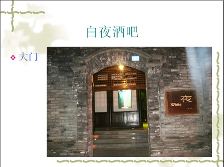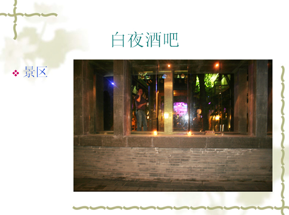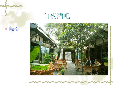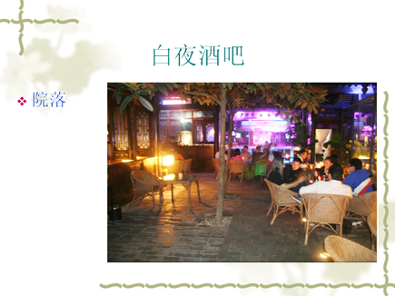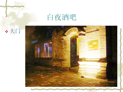 v 白夜酒吧的场地保持着宽窄巷子原有的院落形态,分别为东厢房,西厢房(书吧),户外院落,堂屋.站地600平总共可容纳150人.我们还为您提供超大投影、专业音响及舞台设备.为您举办宴会、派队提供更方便更全面的服务.让您的活动更丰富多彩.